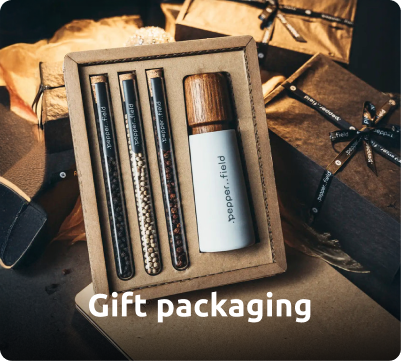 Joy when giving the luxurious set with a grinder and the taste of unique pepper delicacies.