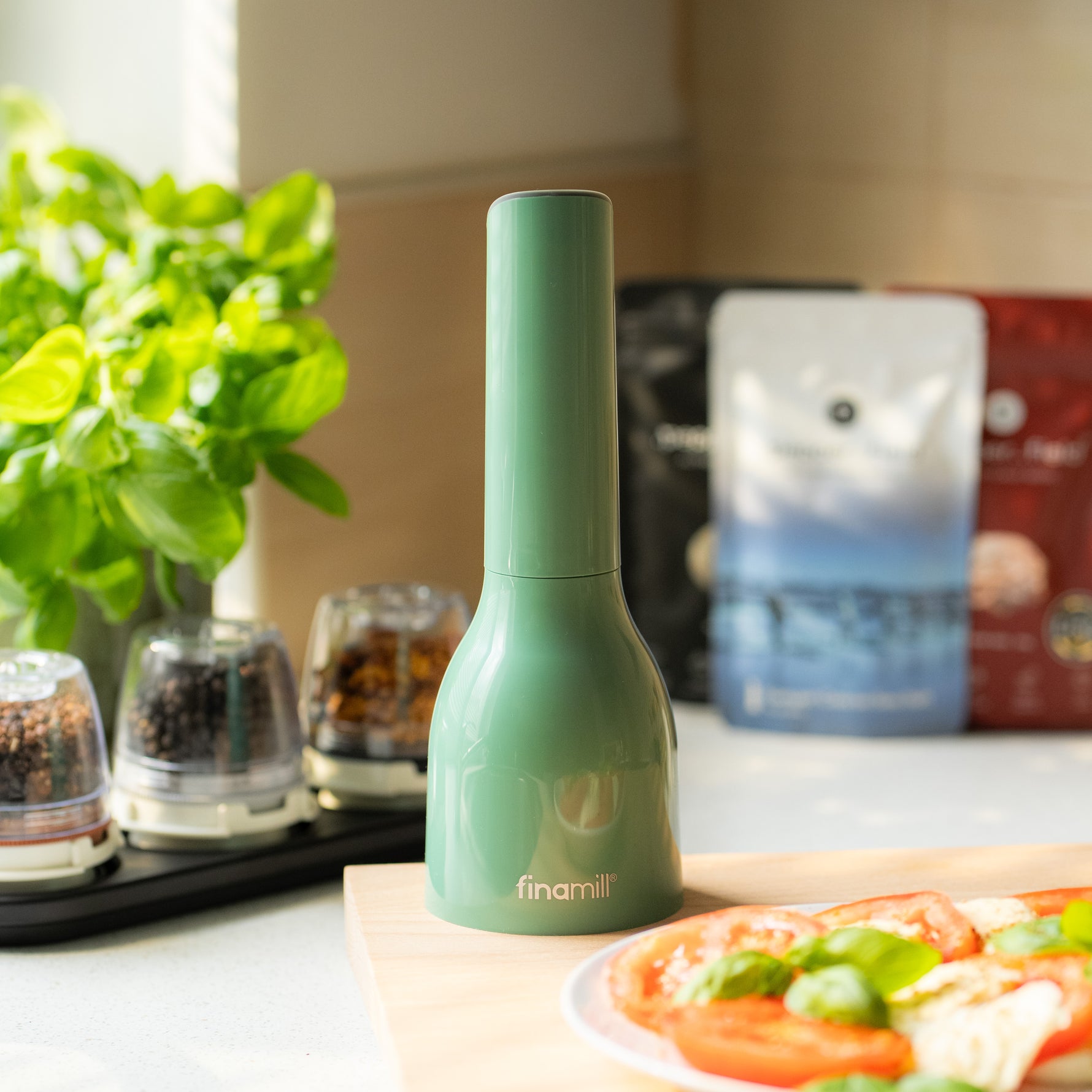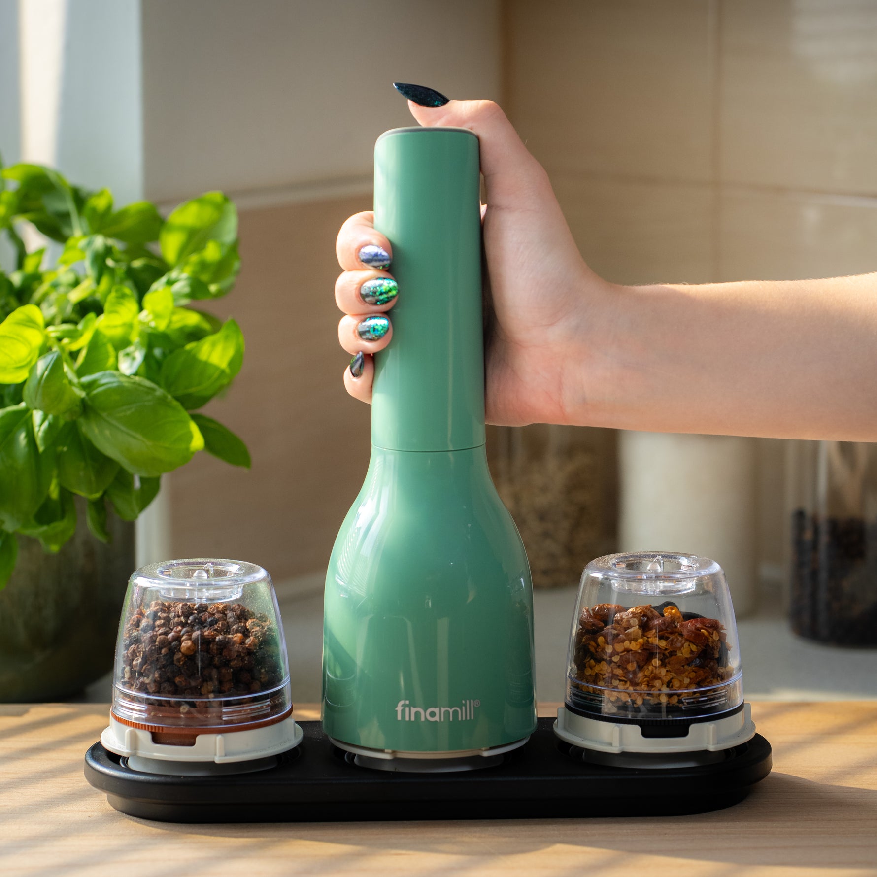 FinaMill Gift Set – shiny green battery Grinder with two containers