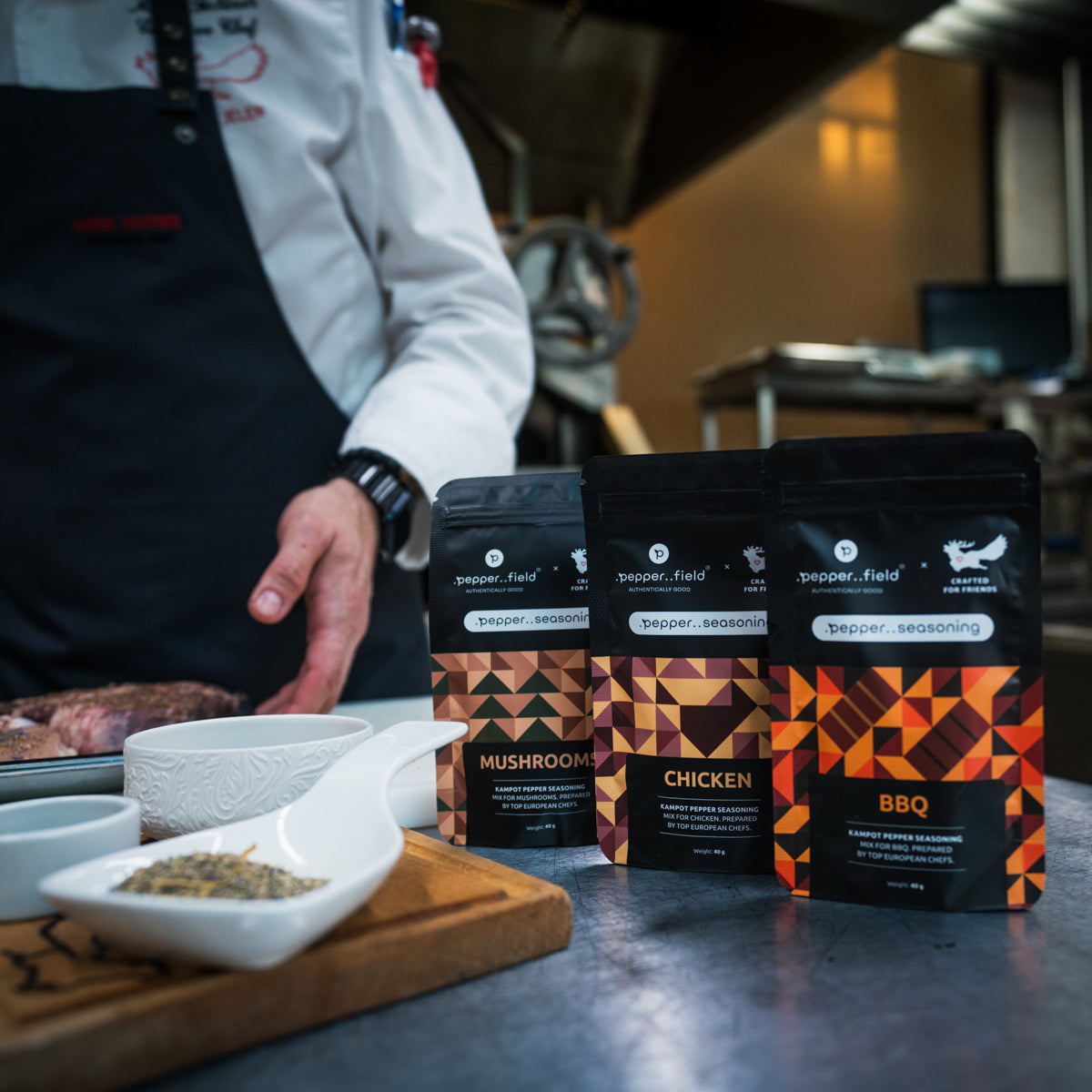 Comfortable blends of various Kampot peppers and herbs, spices and mushrooms for all grill masters and summer BBQ parties.