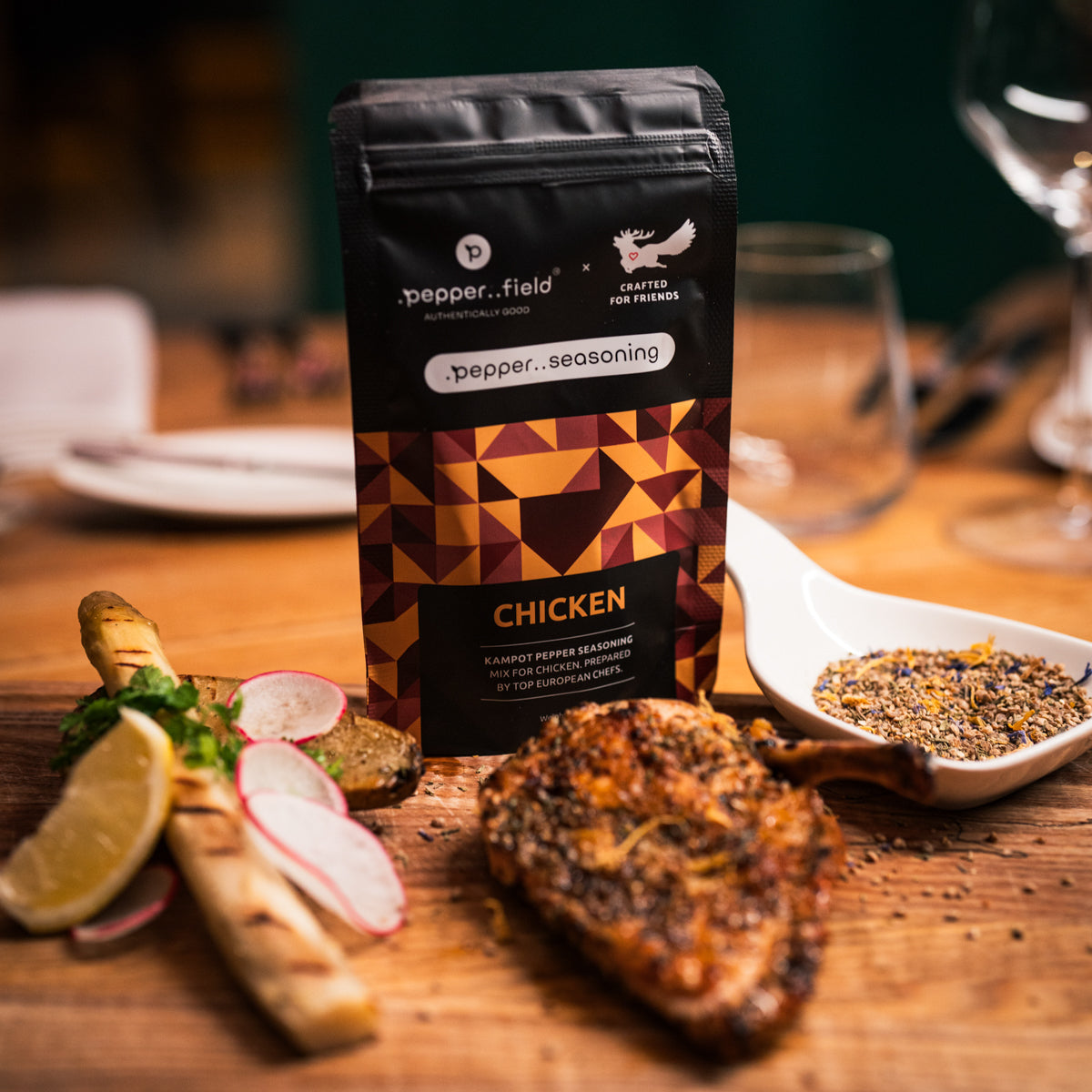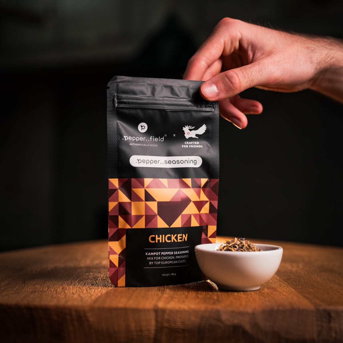 We pack a blend of Kampot pepper and spices into resealable 40-gram bags.