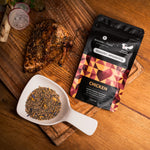After grinding it, notes of camphor, sage, and cedarwood unfold, accompanied by a gentle aroma of nutmeg flower, grapefruit, and other citruses. After a few minutes in the mouth, you can detect hints of nutmeg, thyme flower, and lemon balm underpinned by the aroma of cedar and black tea.