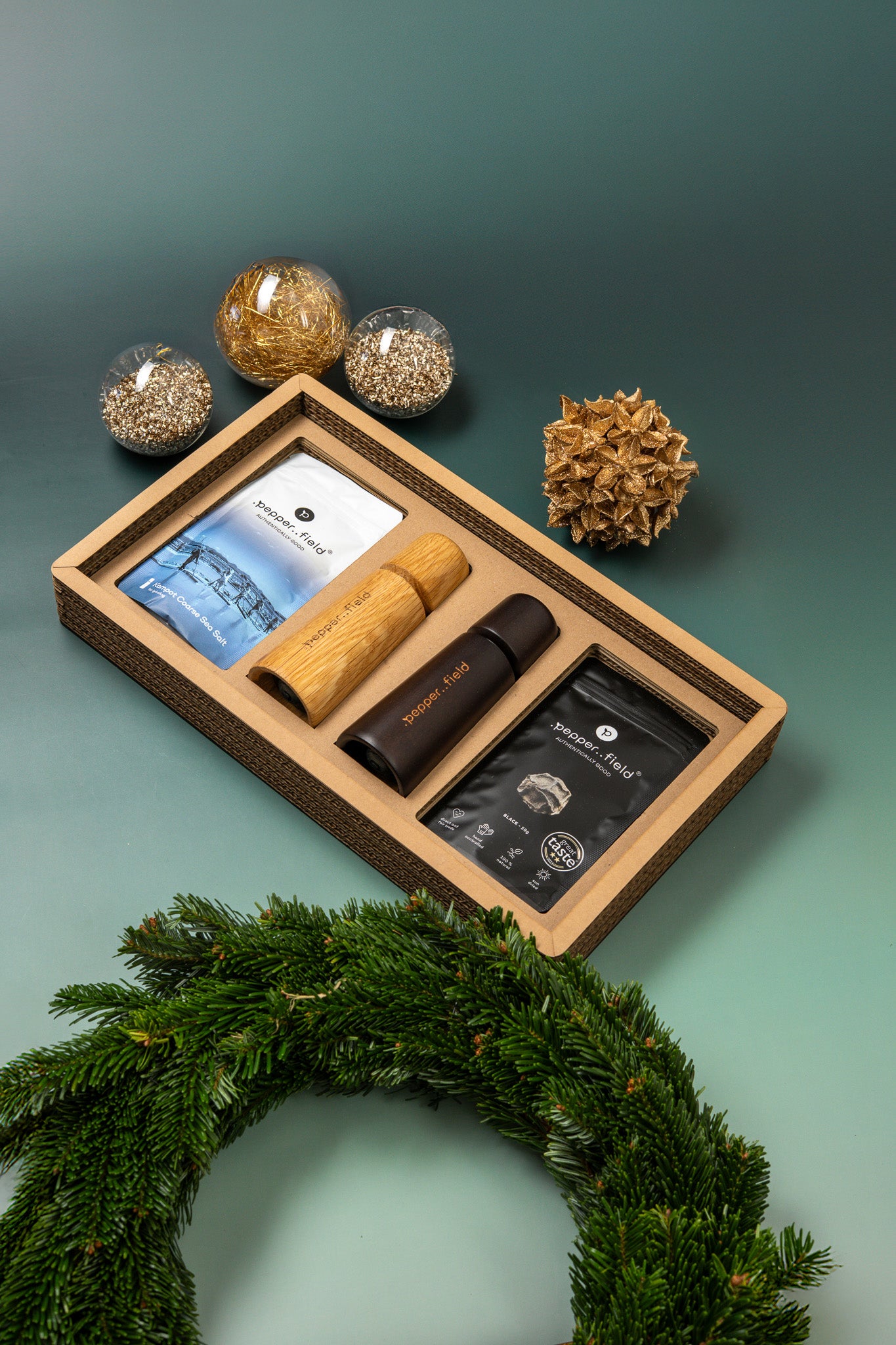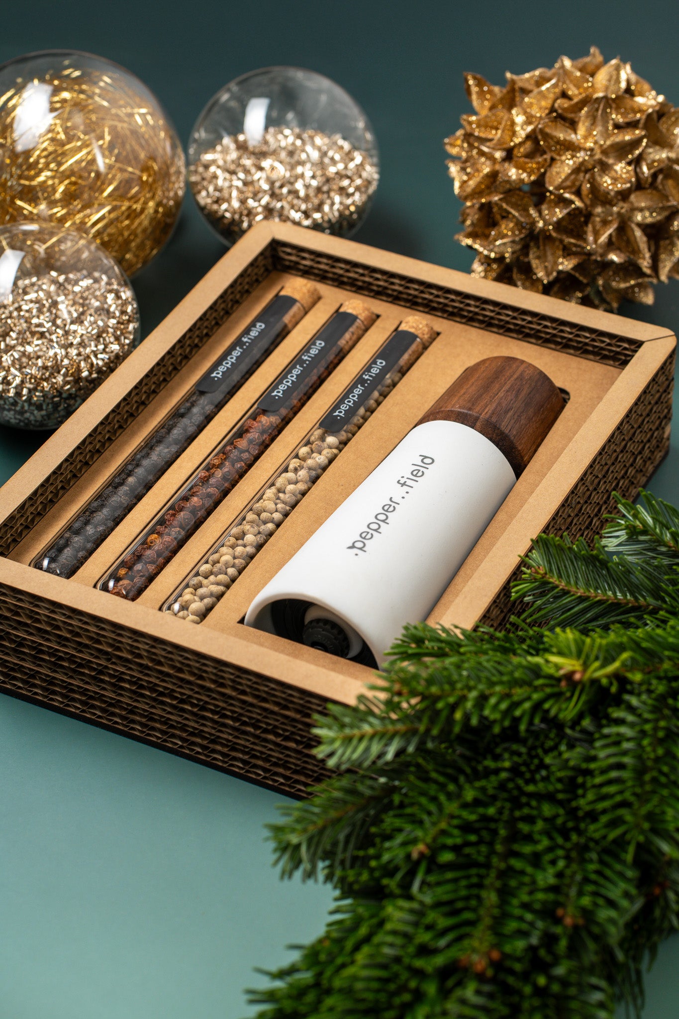 · Stored in a wooden box with the .pepper..field logo and glass tubes made of Czech glass