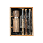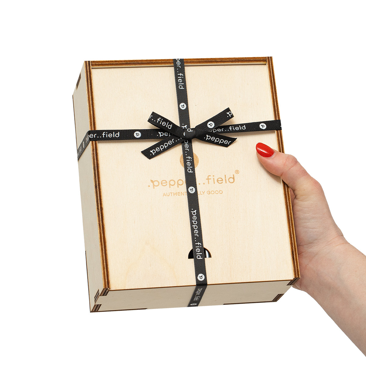 Pepper is stored in glass test tubes made of gorgeous Czech glass, and the entire set fits into a wooden box, which can be engraved according to your wishes. We did not choose these packages by chance. Not only do they look beautiful, but they are also made in the Czech Republic and are all from sustainable material that can be easily recycled or upcycled.