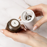 When filling the grinder, never use bare hands, but pour the restless peppercorns directly from the package into the chamber and help yourself with a spoon or funnel. At the same time, don't forget to clean your Grinder regularly. However, never use water or chemical agents for this. A simple cloth, brush, and a drop of olive oil are enough. Always keep the Grinder away from the sink and be careful when using it over steam as well.