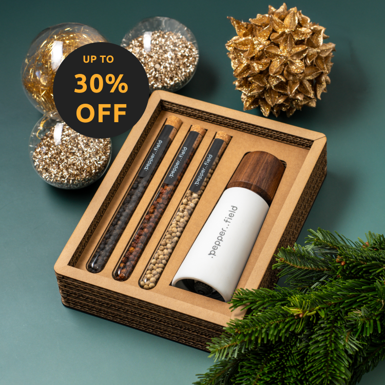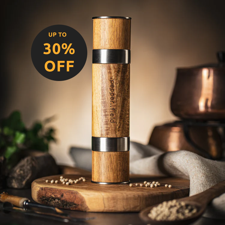 Add any two 20g Kampot peppers to the Duomill grinder – you will get them from us for free.
