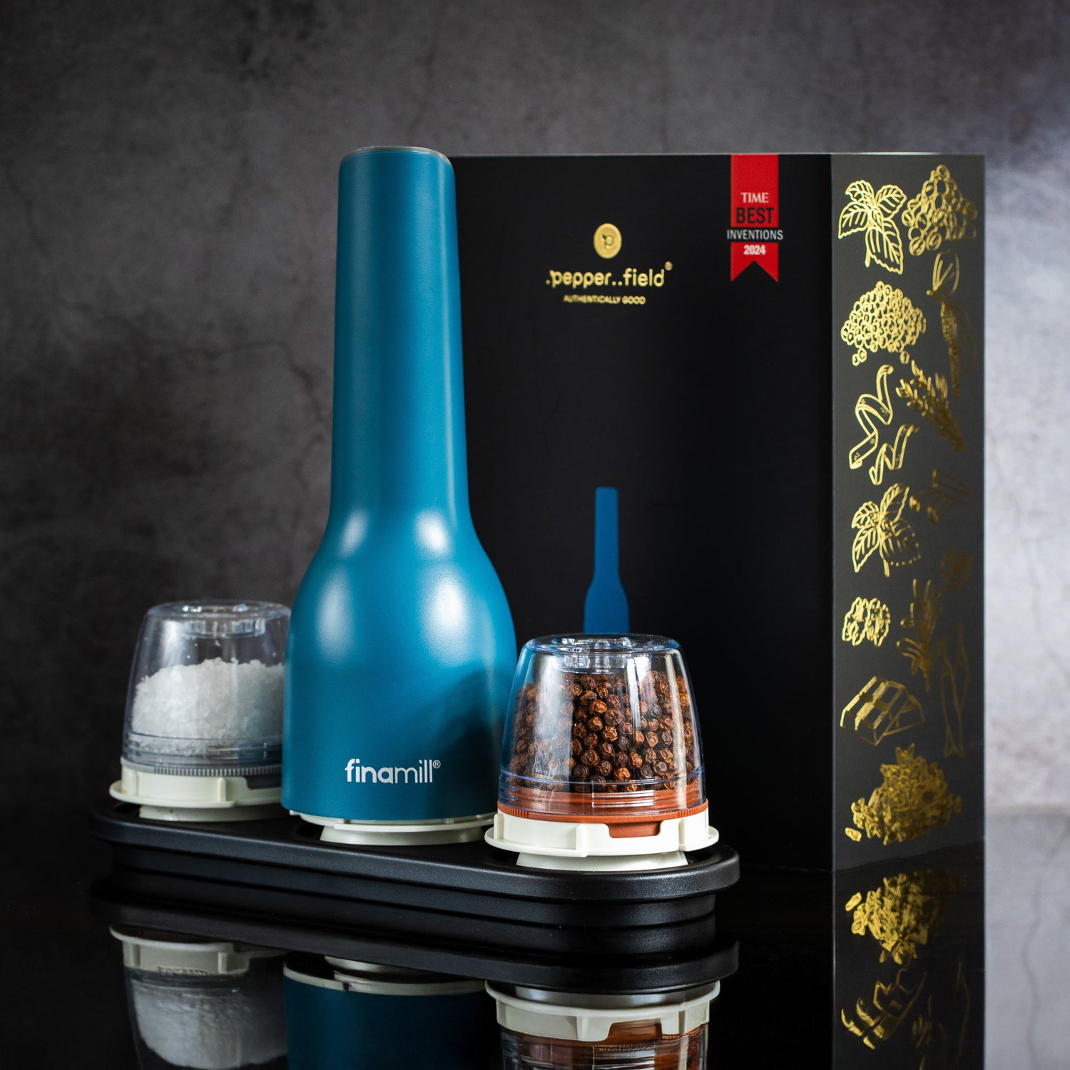 FinaMill® is an electric Grinder with interchangeable containers. Just press one button – and you have perfectly ground fresh pepper, salt, or spices in seconds.