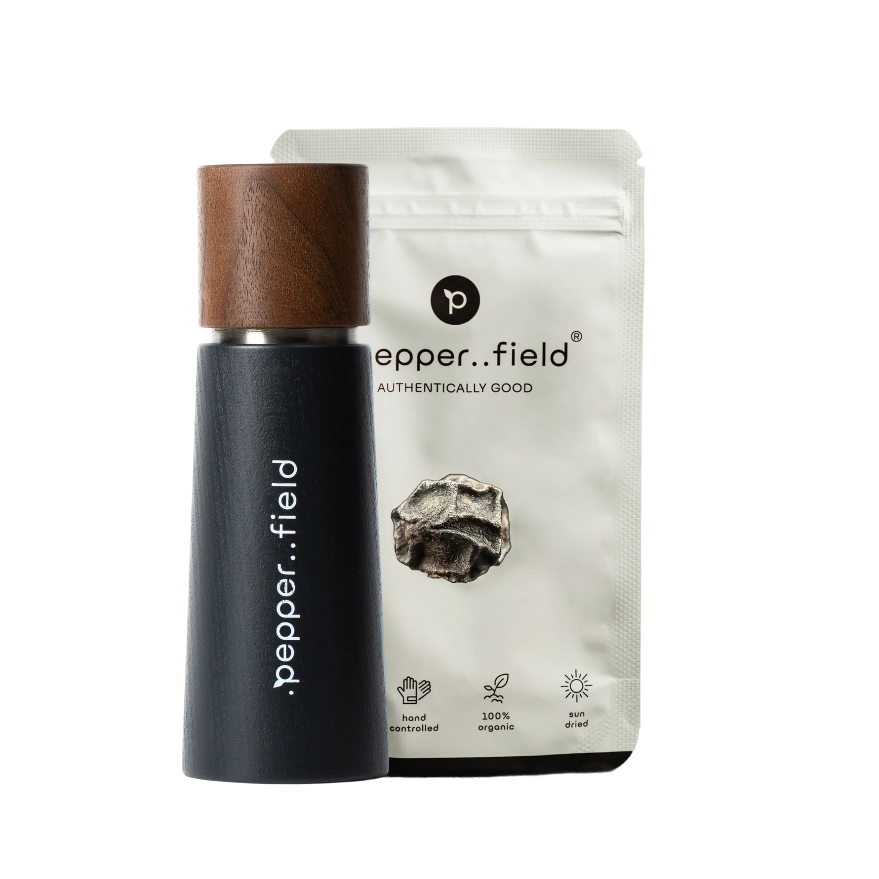 Dark gray Grinder .pepper..field original + black Kampot pepper (20 g)