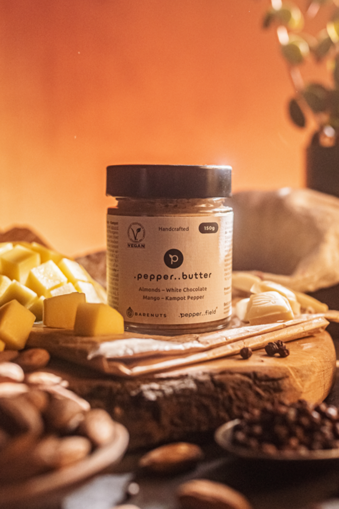 Arašidové maslo so soľným kvetom, bielou čokoládou a kampotským korením (150 g)