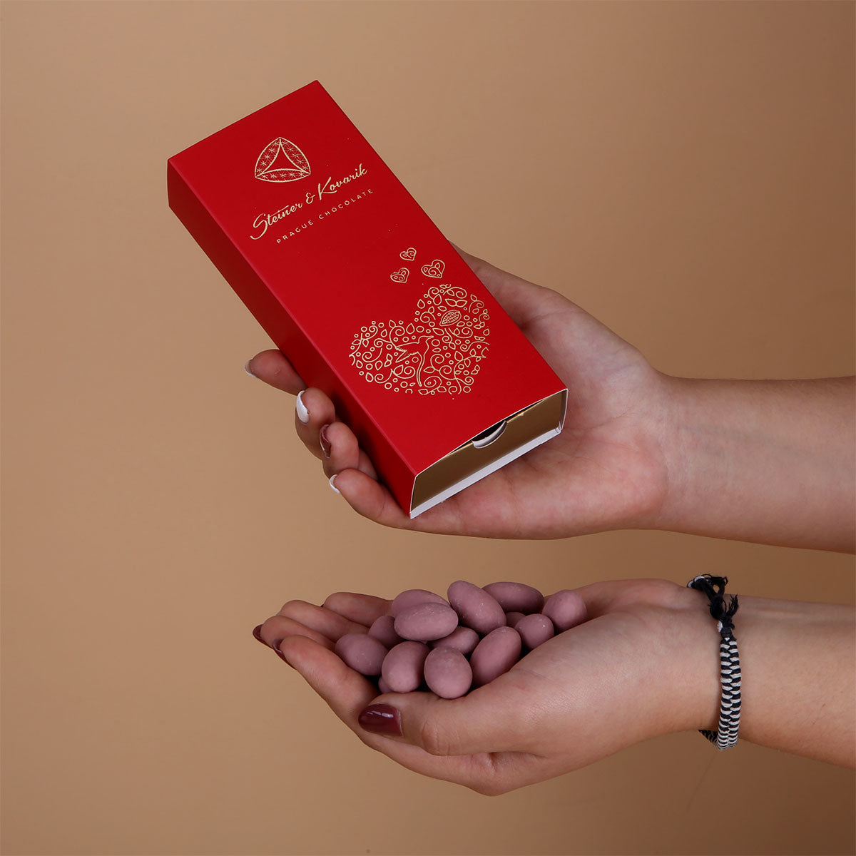 • Pražené mandle obalené v bielej, mliečnej a rubínovej čokoláde